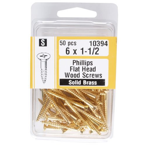 Midwest Phillips Flat Head Wood Screws, 6 x 1 1/2". Solid Brass.